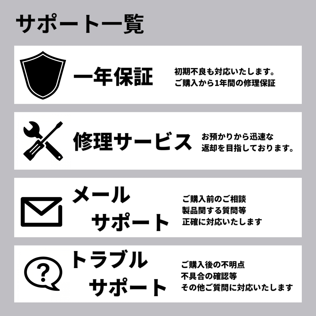 保証について 1年修理保証